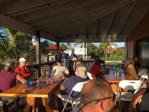 SV Sea Shifter had some friends coming into the anchorage so we all headed to a place called Scorpio’s (right across from Lorraine’s) for an impromptu happy hour. We had stopped-in earlier, and bartender “Zhivago” said that even though the official happy hour was the day before, if we show up with 10 or more, he’ll make things happen. We told him we would see what we could do, and when we returned at 1600ish, there were easily 30 people at the bar already with no effort on our part whatsoever. Zhivago called in extra help, and put the rum punch and beer on sale. Christa had to pace herself as the “rum punch” was really mostly rum with a splash of juice for “colour.”